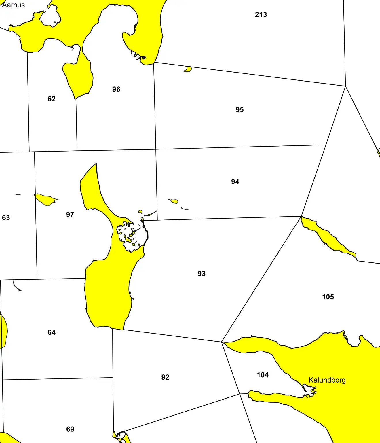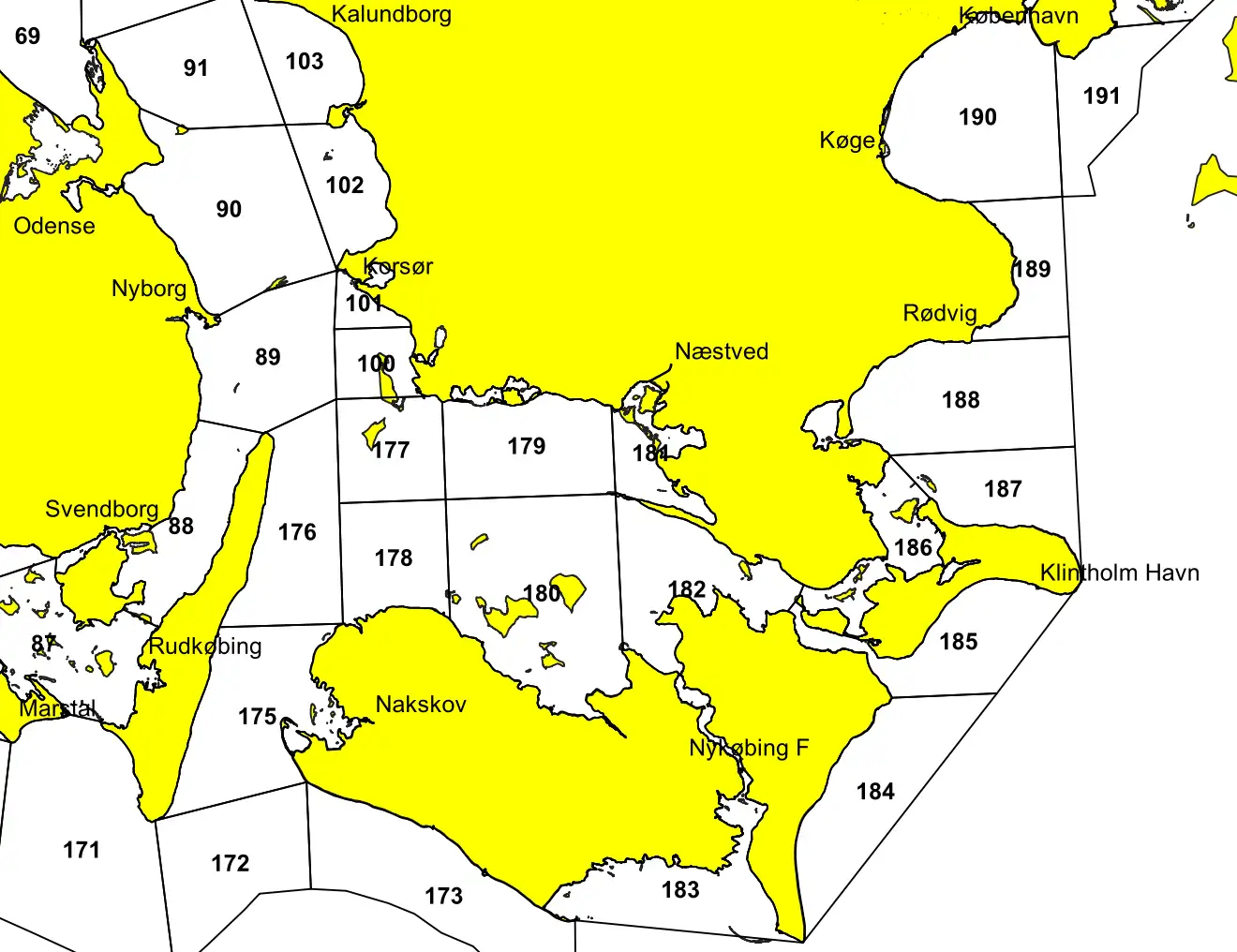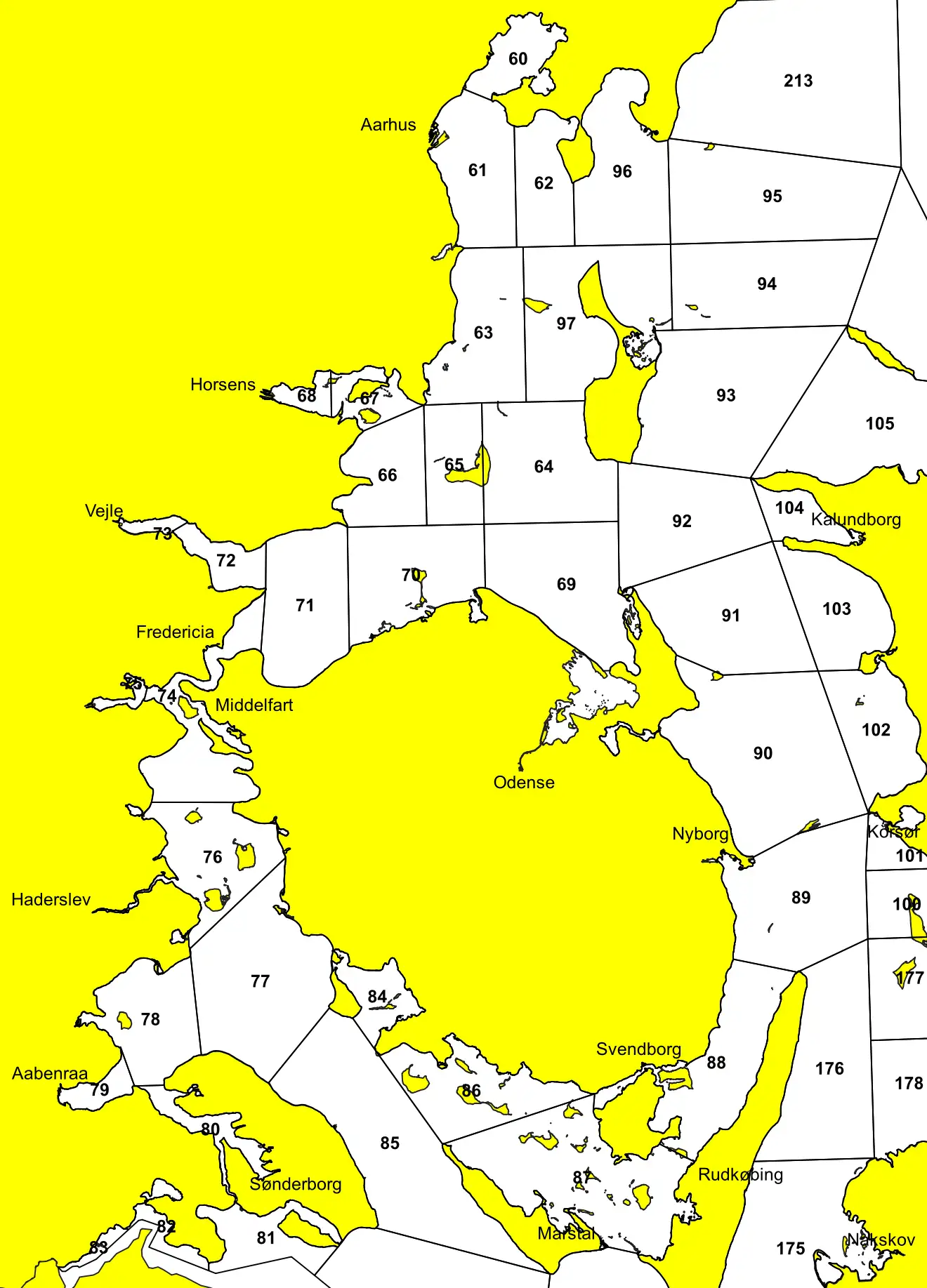 Jylland østkyst syd for Djursland og Fyn (produktionsområde 60-91)