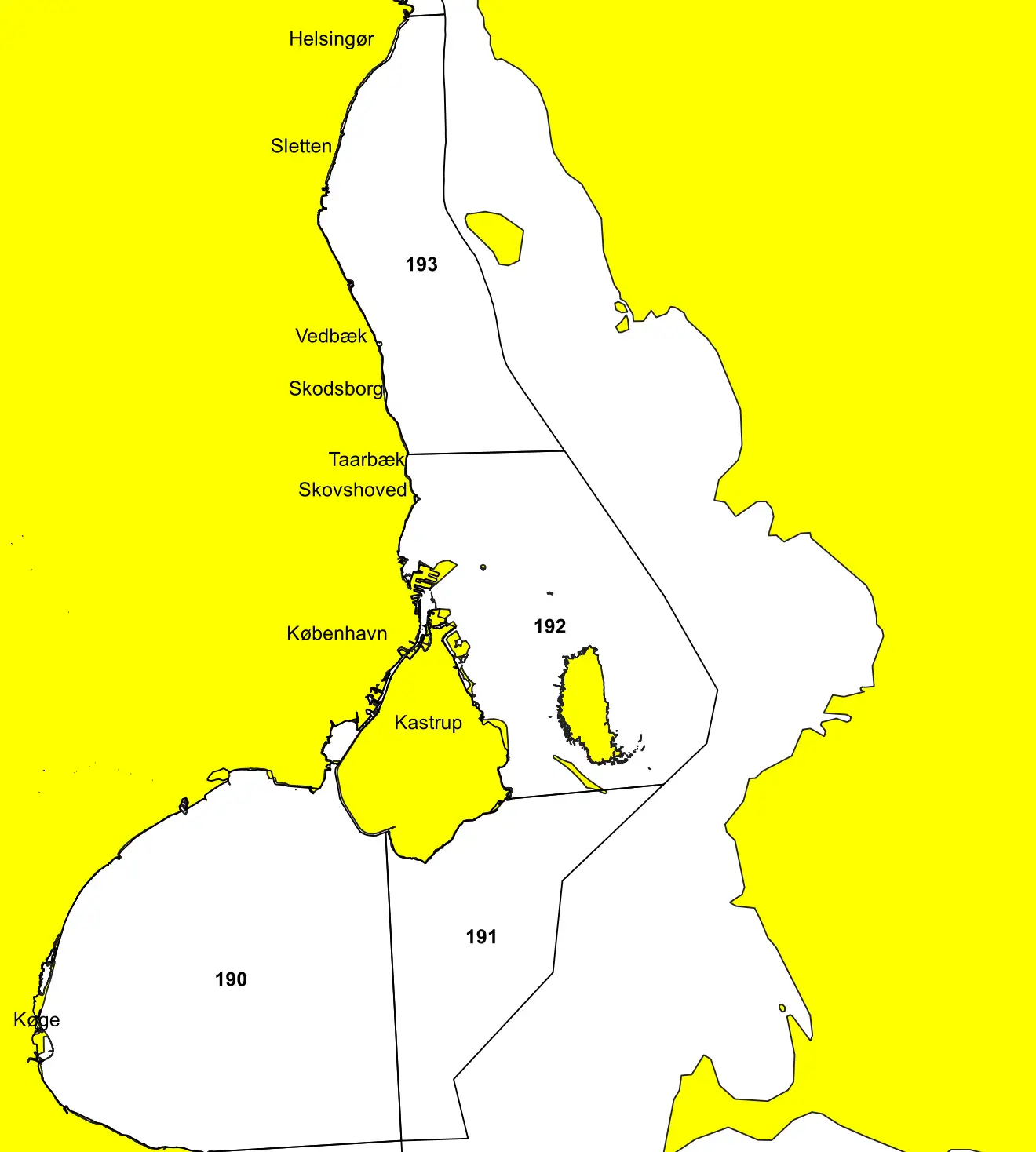 Produktionsområderne ved Øresund går fra et område ud for Køge Bugt til Helsingør i Nord.