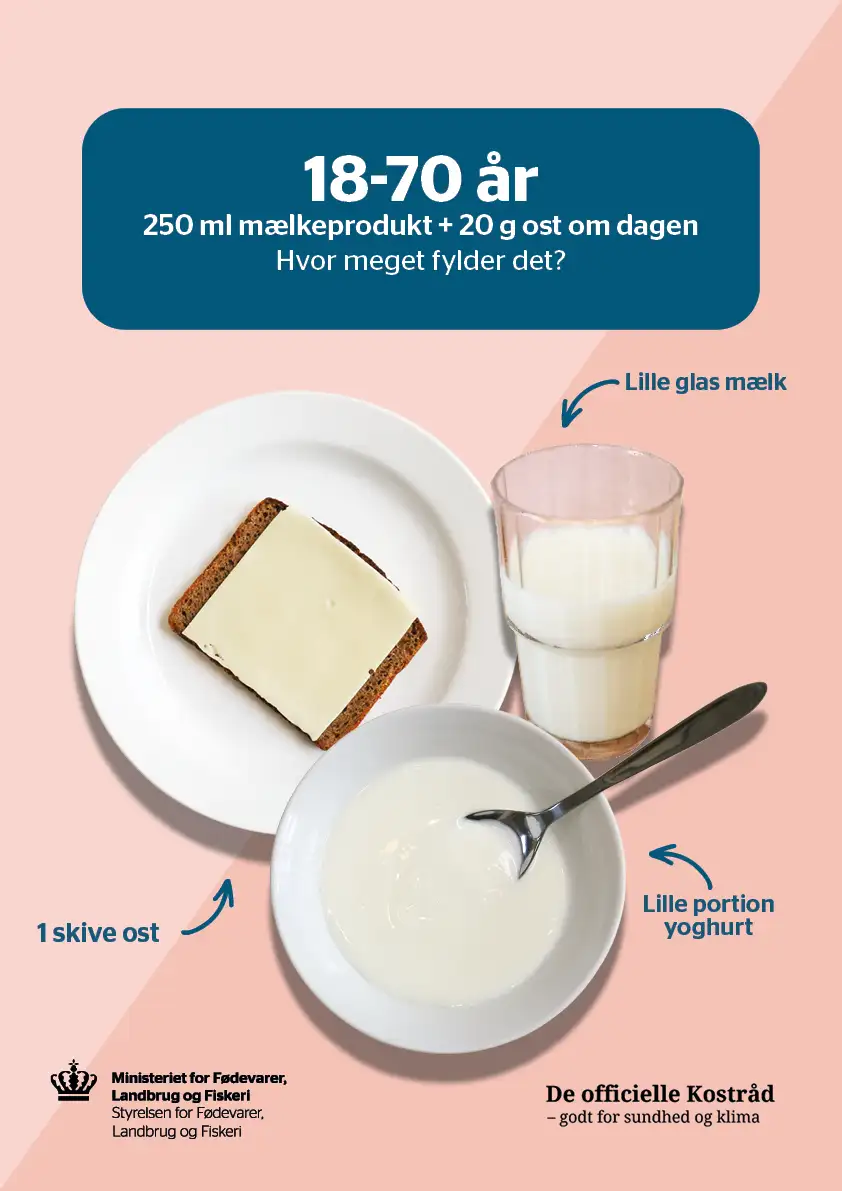 Råvarerne på billederne er blot eksempler på, hvordan du kan sammensætte den anbefalede mængde – det er ikke en facitliste. At spise varieret er stadigvæk et vigtigt kostråd.